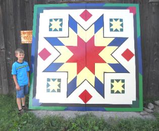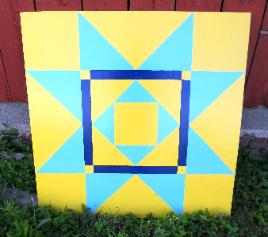 | The beauty of a Barn Quilt is undeniable! Barn quilt blocks are gaining in popularity throughout Ontario they are used not only on barns, but garages, fences, the side of houses, and even businesses. Ideal for gifts and making an artistic statement by enhancing the aesthetics of your property. The pattern for a particular barn quilt may be chosen for myriad reasons. Often the barn quilt is a replica of a painted quilt that resides on the property or honors a loved one. A pattern may be selected because of its name; Corn and Beans is popular among farmers. Sometimes, the barn quilt is simply one whose pattern is appealing to either its creators or its owners. We will custom hand paint your barn block to coordinate with your colours, in the block design of your choice, or we can choose for you. The blocks are painted onto premium exterior grade plywood and the sizes are 2 feet square, 4 feet square or 8 feet square. We use premium environment friendly exterior paint for years of durability against UV rays, fading and wear. |