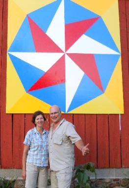 | About Barn Quilt Blocks The art and display of Barn Quilts originated in the US and can be traced back almost 300 years with the arrival of immigrants from the Rhine region of Germany. They came for religious freedom. These groups included Amish, Mennonites, Lutherans and other Reform groups. Many settled in Pennsylvania, especially in Berks, Lancaster and Lehigh counties. The designs can still be found in the Amish communities today in Pennsylvania as well as Ontario where many Crown Loyalists resettled after the American Revolution. Painting a distinctive quilt pattern on their barns was a way of allowing for decoration as well as a way for navigating the sparsely populated colonial countryside and the designs were also believed to protect the farm and bring good fortune as well. Travellers would look for to particular patterns marking cross roads and family farms. “Head west until you reach North Star, keep to the right a ways until you see the Broken Wheel then you have reached the Wallace farm.” A quilt hung from the porch or tree in the yard as well as quilt blocks painted on barns were used as navigation points for the Underground Railroad. By the early 1900’s decorating barns with colourful hex designs and quilt blocks had peaked and this art form slowly gave way to painting commercial advertisements such as Red Man Chewing Tobacco and Mail Pouch. Today barn quilts are rapidly gaining popularity again with more and more becoming visible throughout Pennsylvania and Ontario. Unlike the past quilt blocks are not only found on barns but on almost any type of building, from the traditional barn, houses, garages, sheds, downtown business buildings, and even churches. Quilt blocks are also mounted on gates, fence posts or just mounted on two posts and displayed in the yard or a park. Barn quilt squares have made an impact on tourism with Quilt Trails being developed in many states in the US as well as here in Ontario. Tourists visiting the area as well as local citizens enjoy a Sunday drive on the Quilt Trail through towns and farm country to see the barn quilts. |